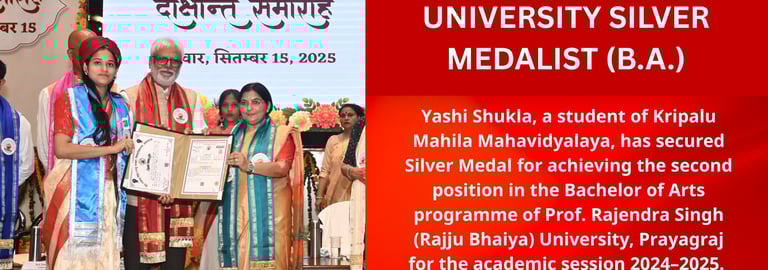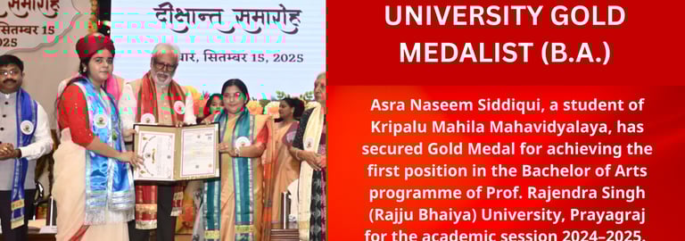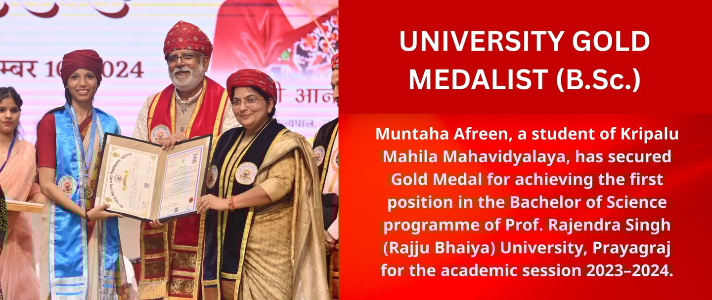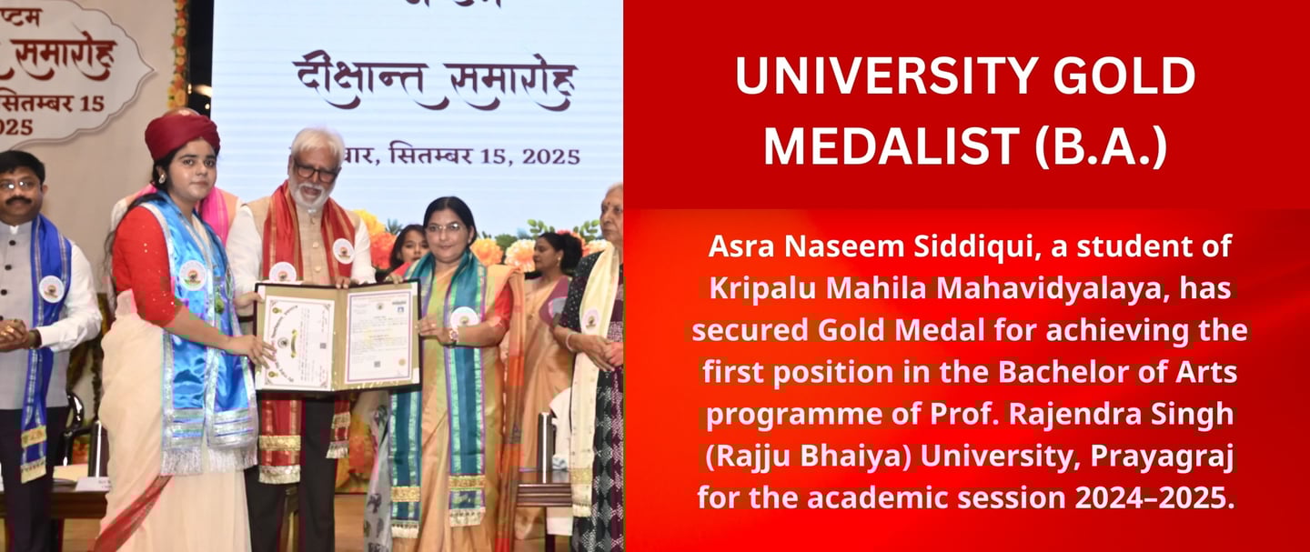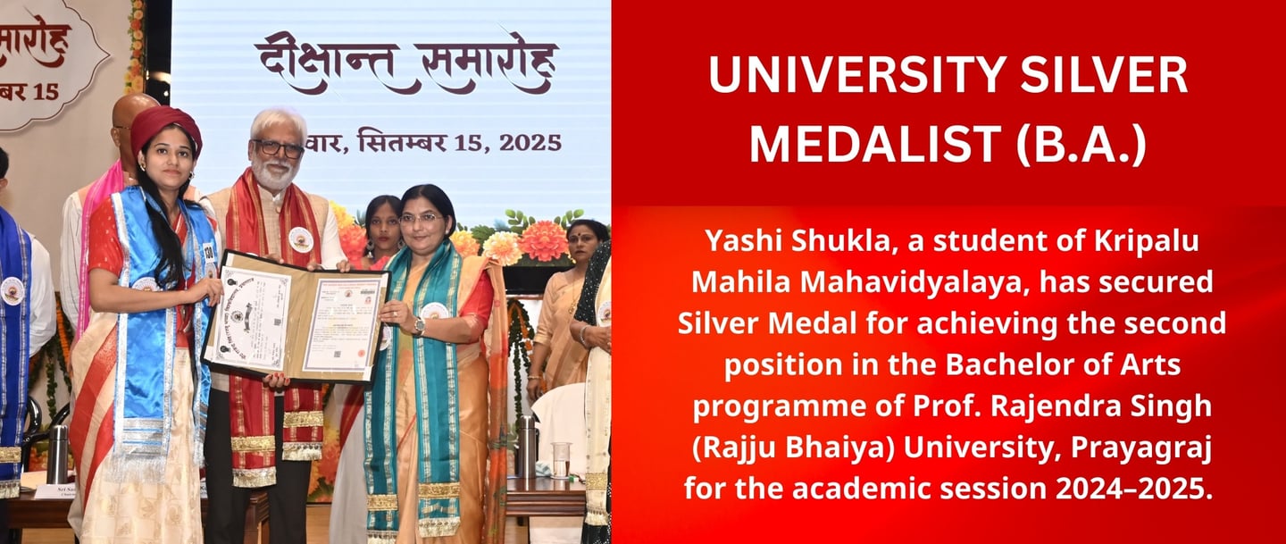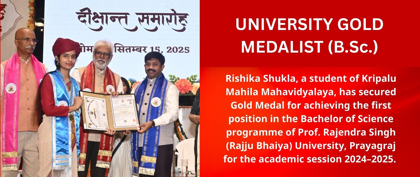 Kripalu Mahila Mahavidyalaya is a self-financed, all-girls, Graduate and Post Graduate college, established by the grace of 5th Original Jagadguru Shri Kripalu Ji Maharaj. Currently, it runs under the guidance of Sushri Dr. Vishakha Tripathi Ji. The institute is situated in Kunda, Pratapgarh, one of the most rural areas of Uttar Pradesh, and is affiliated to Prof. Rajendra Singh (Rajju Bhaiya) University, formerly Allahabad State University.