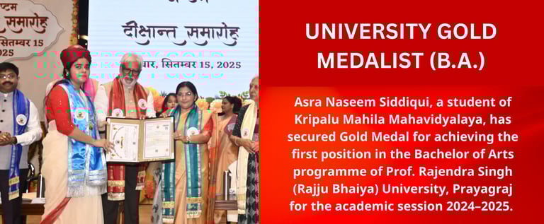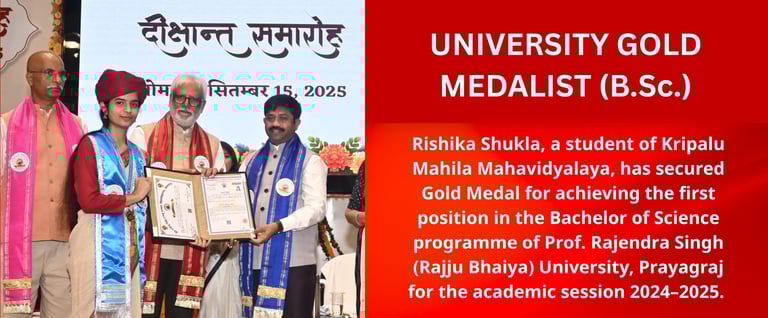 Kripalu Mahila Mahavidyalaya is a self-financed, all-girls, Graduate and Post Graduate college, established by the grace of 5th Original Jagadguru Shri Kripalu Ji Maharaj. Currently, it runs under the guidance of Sushri Dr. Vishakha Tripathi Ji. The institute is situated in Kunda, Pratapgarh, one of the most rural areas of Uttar Pradesh, and is affiliated to Prof. Rajendra Singh (Rajju Bhaiya) University, formerly Allahabad State University.